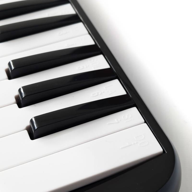 Melódica de 32 notas, construida en plástico de alto impacto, caña interna de acero. Notas grabadas en el teclado. Incluye manguera con boquilla y funda. Colores: Negro, Azul, Rojo, Rosa y Verde.