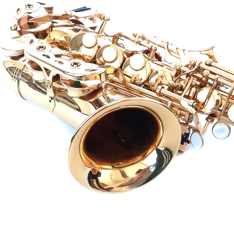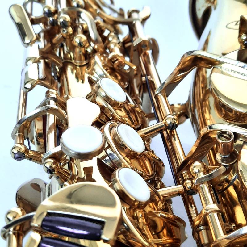 Saxofón soprano curvo Bb con llave de F#, terminación en laca dorada, cuerpo yellow brass. Incluye un estuche rígido ABS, boquilla con caña, abrazadera y cubre, guantes, paño de limpieza, grasa lubricante, correa y tarjeta de confianza/garantía de 6 meses.