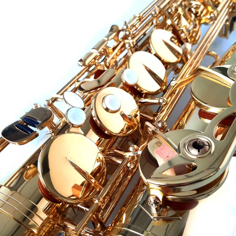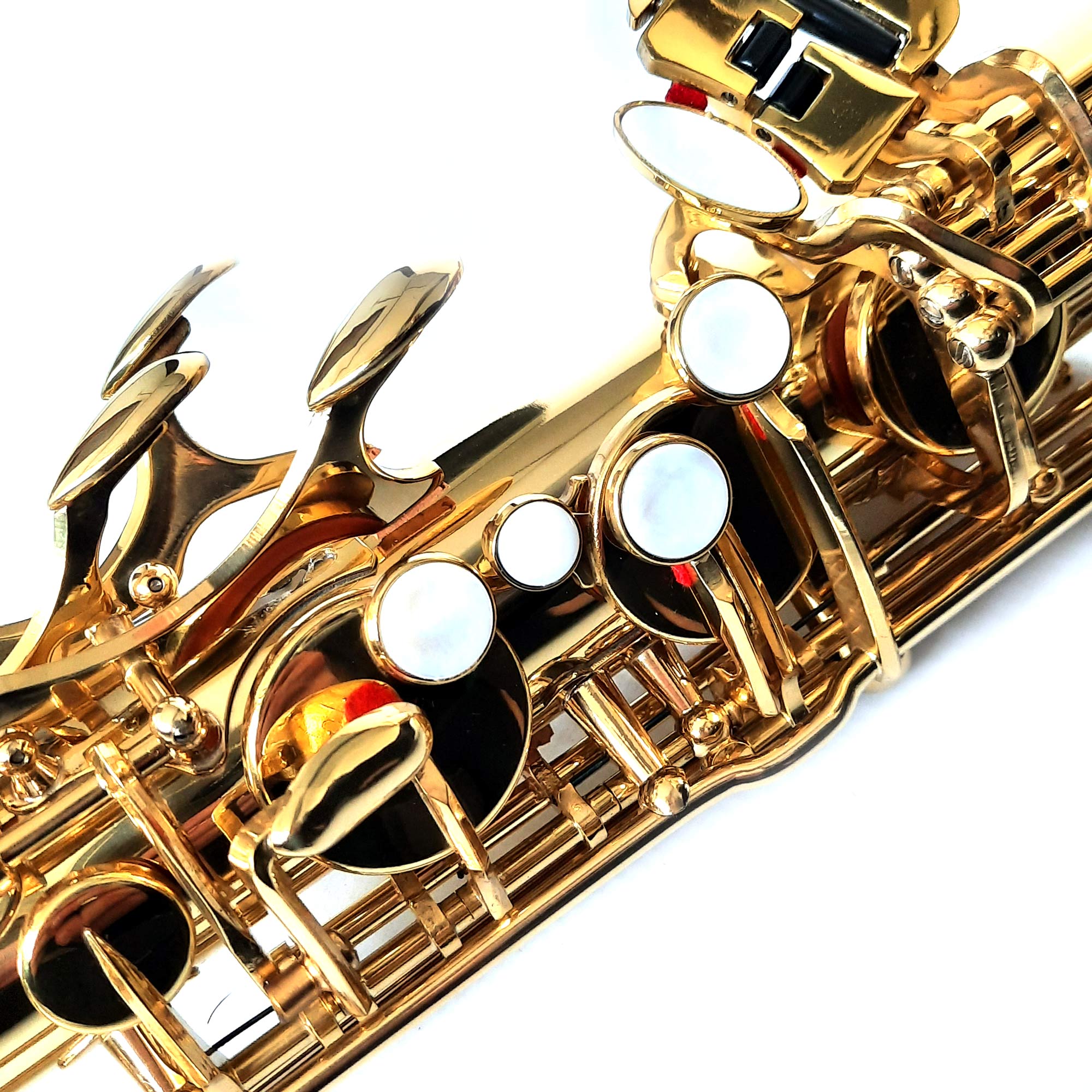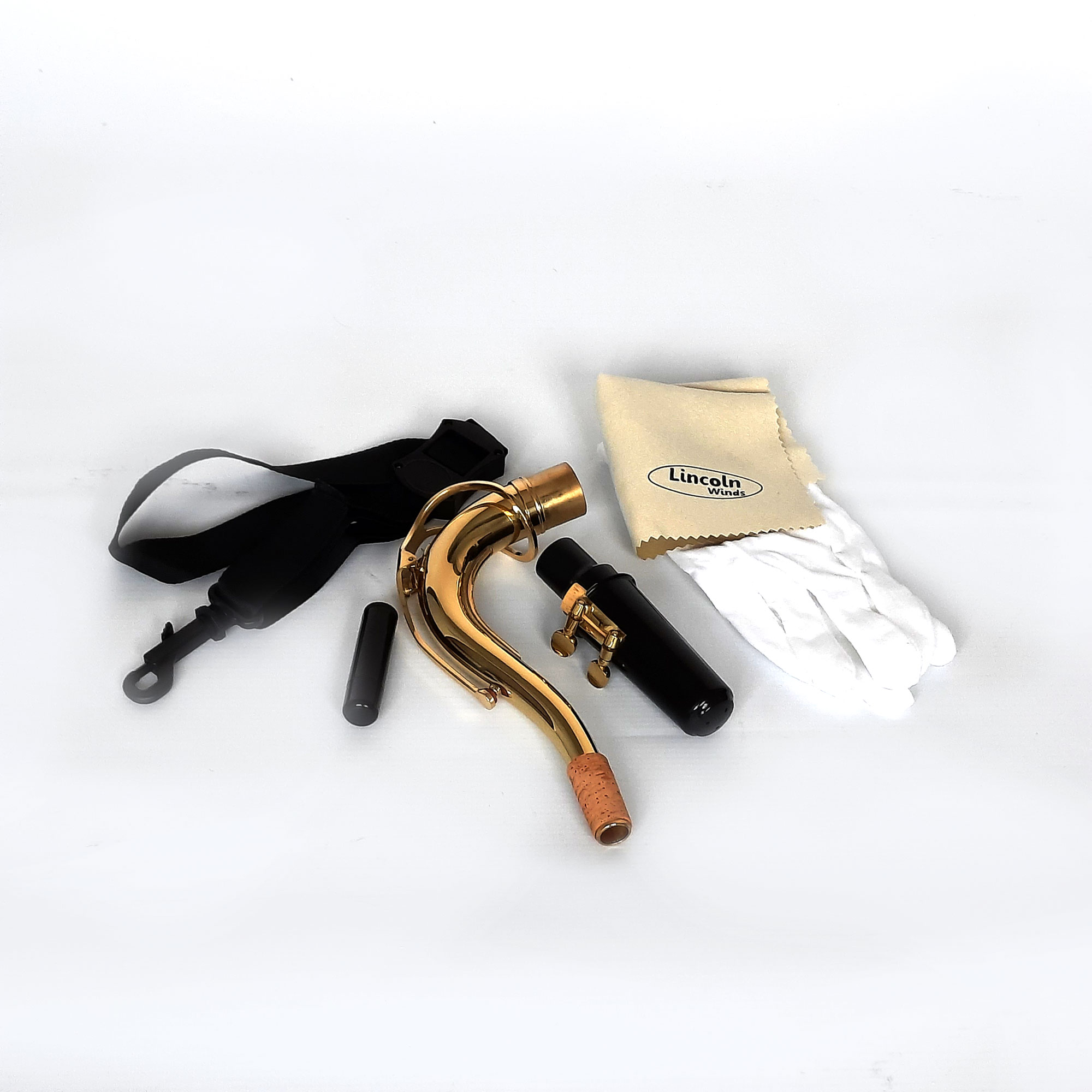 Terminación en laca dorada, cuerpo yellow brass. Incluye un estuche rígido ABS, boquilla con caña, abrazadera y cubre, guantes, paño de limpieza, grasa lubricante y tarjeta de confianza/garantía de 6 meses.